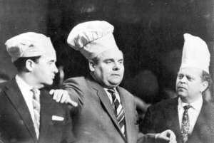 | 'Da lacht der Bär', die erfolgreiche Sendereihe des Berliner Rundfunks, moderiert von den drei 'Mikrofonisten' (v.l.n.r.) Heinz Quermann, Gustav Müller und Gerhard Wollner (s.auch Datenbank: Personen), stand vom 2. November 1955 an auch im Programm des DFF. | ![]() |